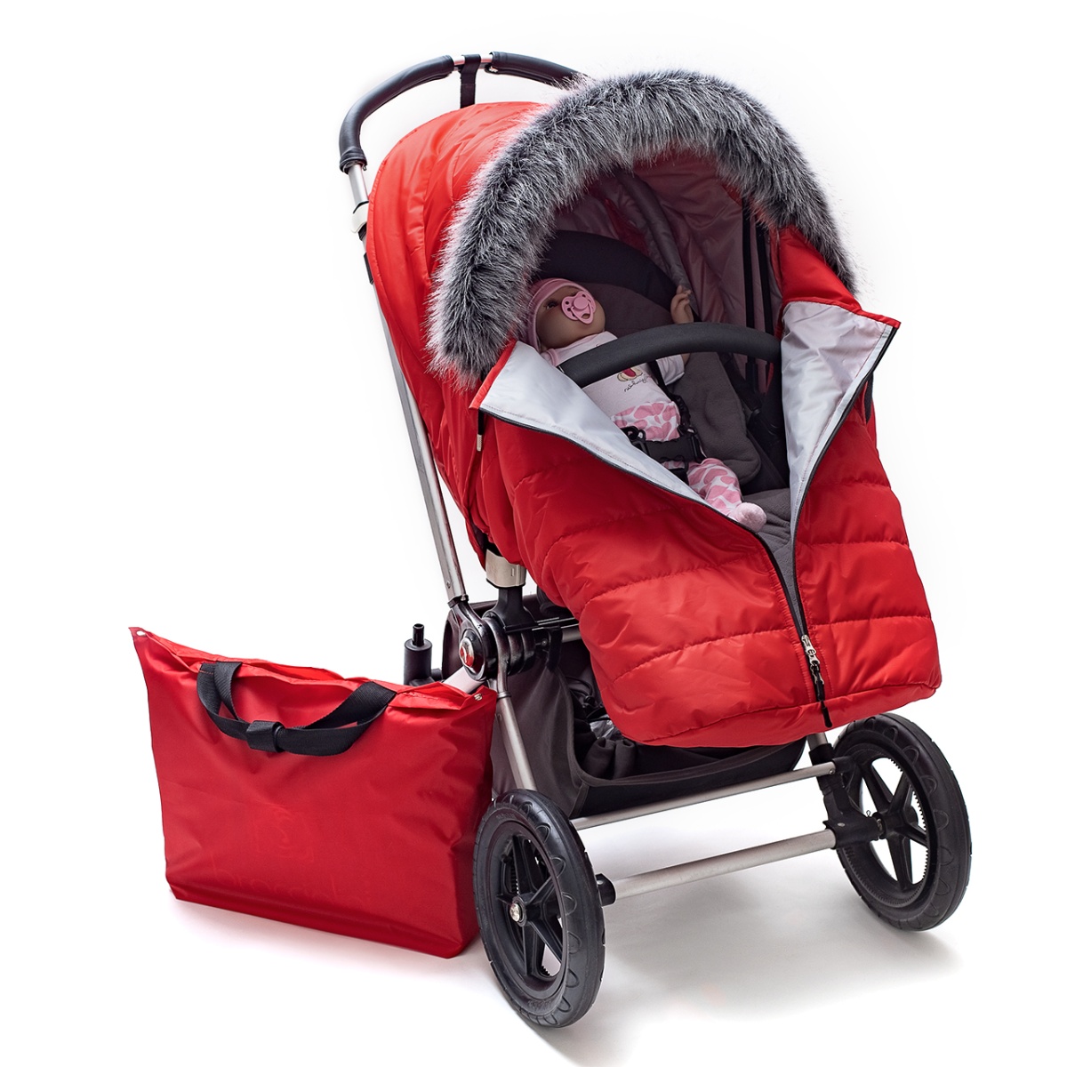 Универсальный теплый чехол на коляску, красный